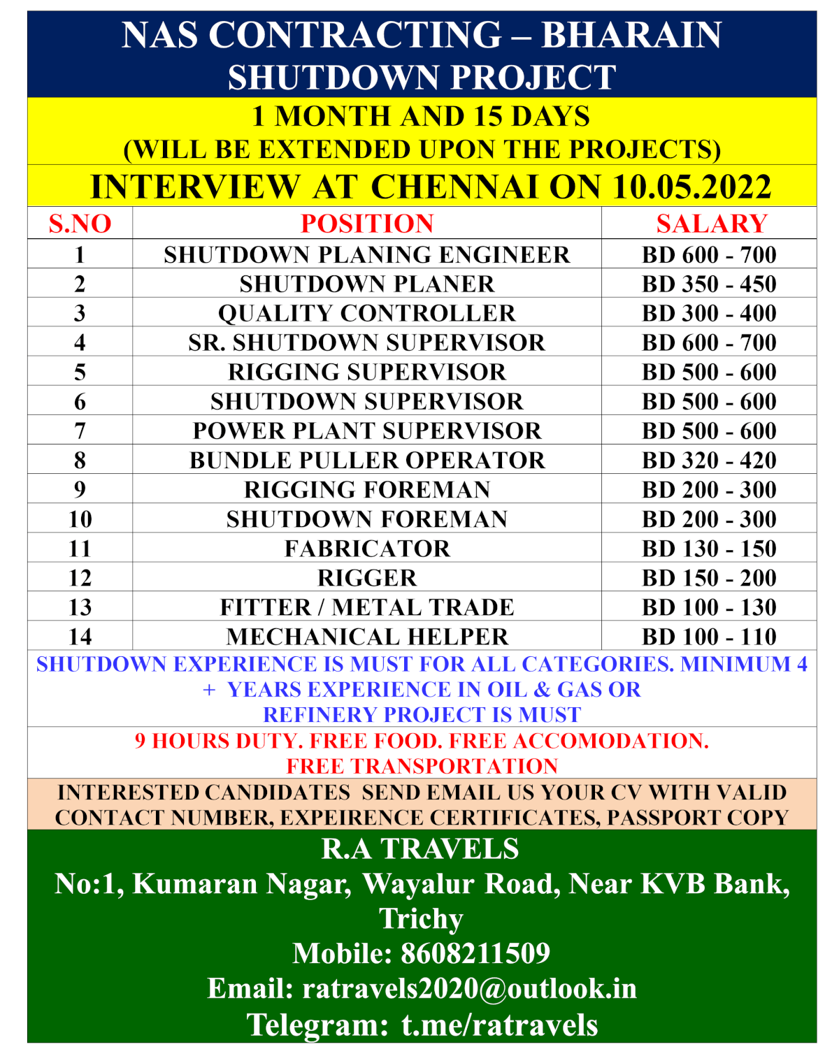 NASS Contracting Bahrain Vacancy - Shutdown Project