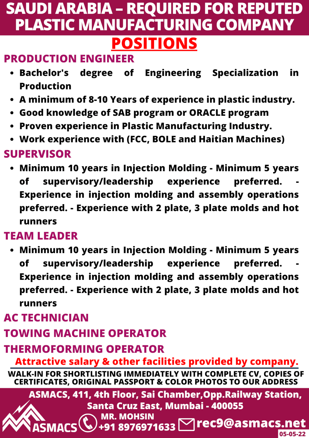 Wanted for Saudi - Plastic Manufacturing Company