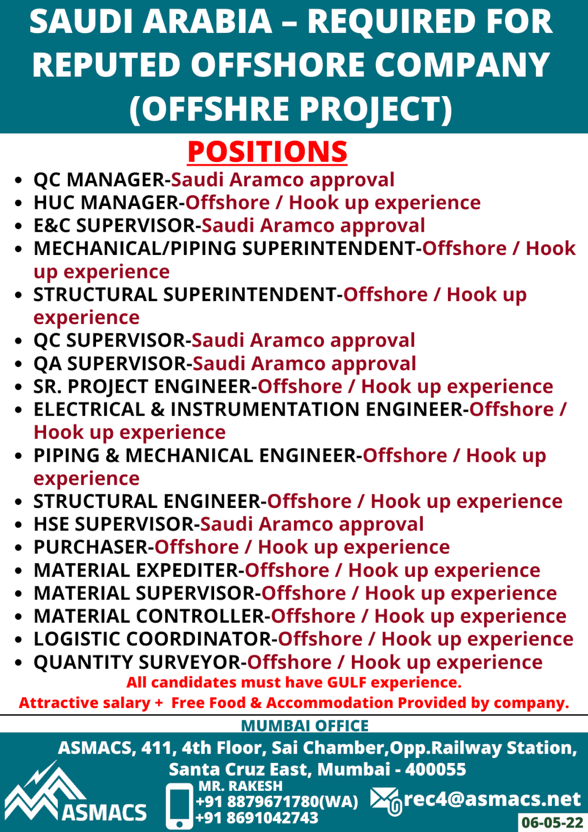 Candidates must have gulf experience