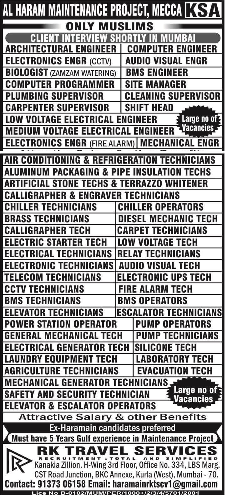 Saudi Job Vacancy 2022 - Al Haram Maintenance Project Mecca, KSA
