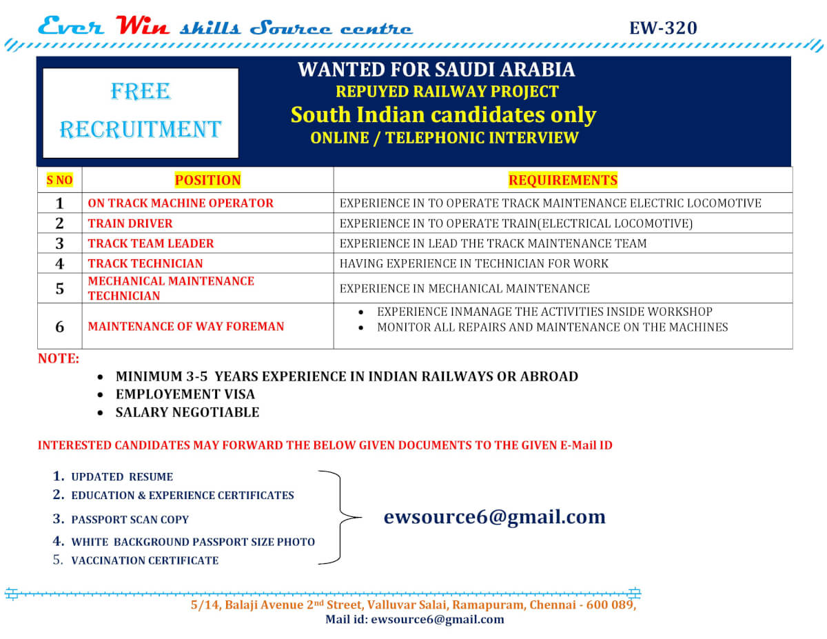 Free recruitment to Saudi - Railway Project