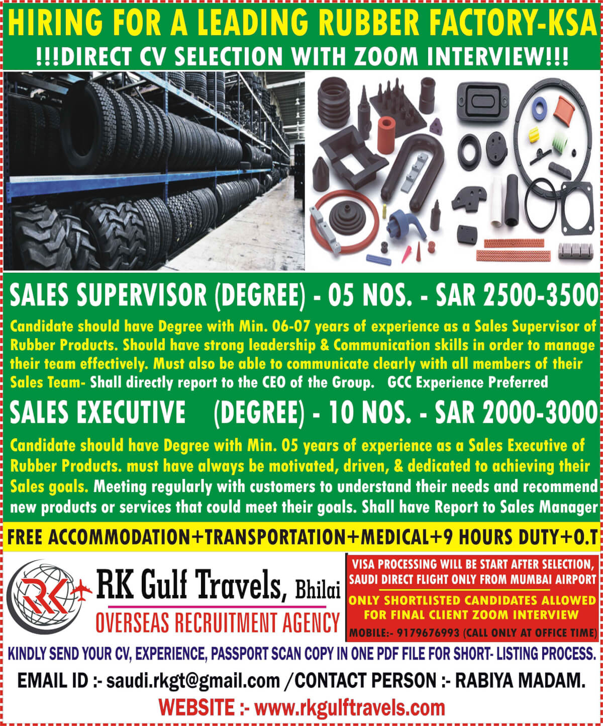 Sales Executive Jobs in Saudi Arabia - Rubber Factory
