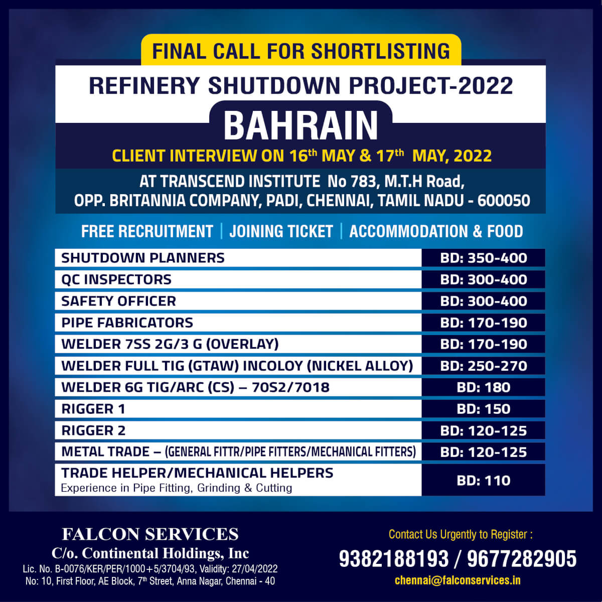 Bahrain Shutdown jobs 2022 - Free recruitment