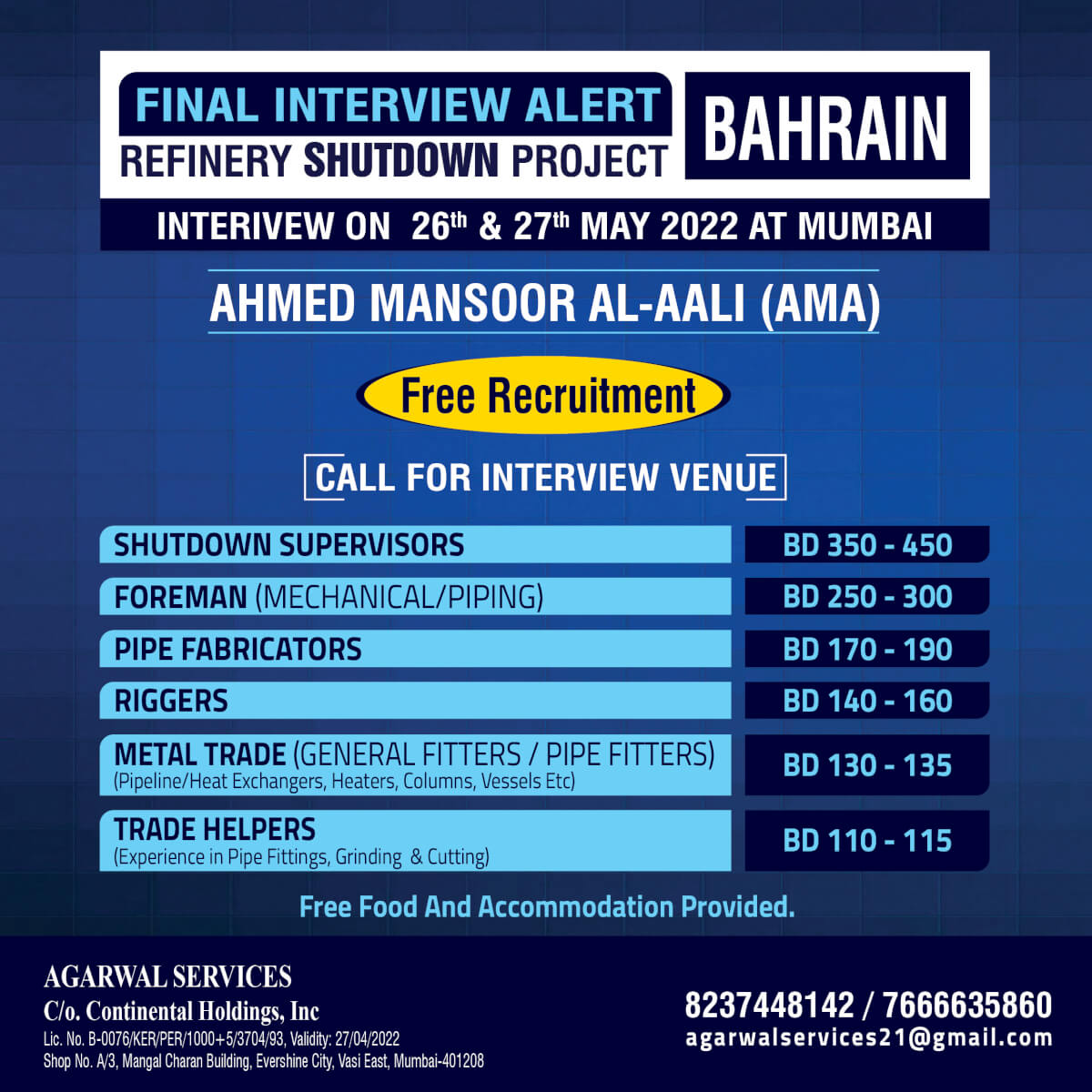 Ahmed mansoor Al aali job vacancy - Free recruitment to Shutdown in Bahrain