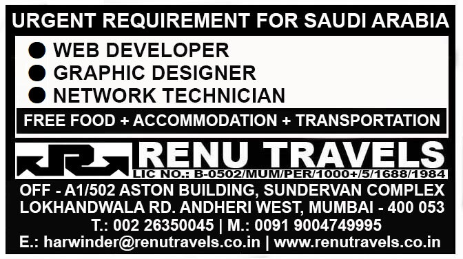 Urgent requirement for Saudi arabia