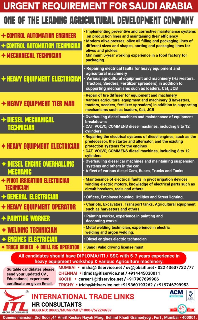 Urgent requirement for Saudi arabia - Agricultural Development Company