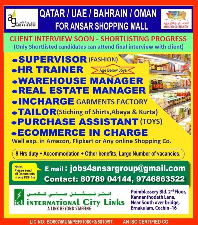 Ansar Mall job vacancies 2022 - Hiring for Qatar, UAE, Bahrain & Oman