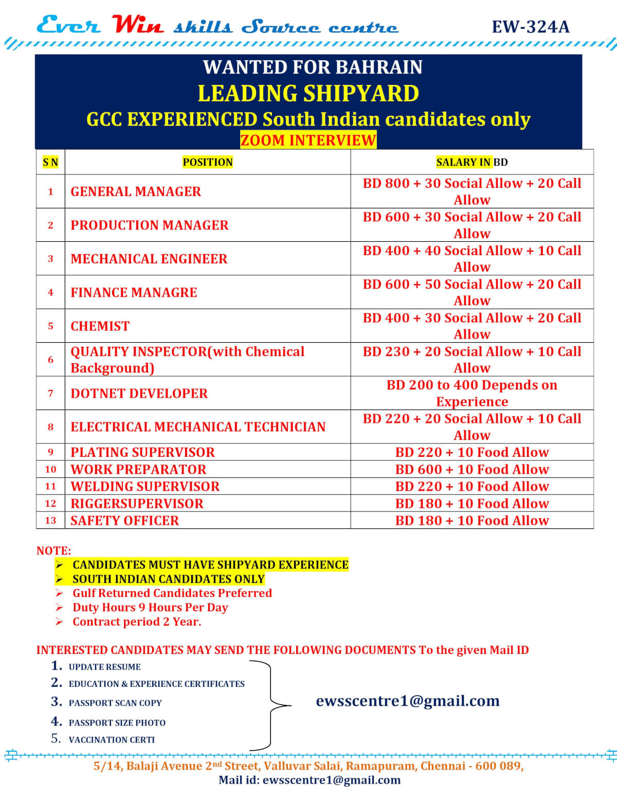 Plating supervisor | 230 BD | |