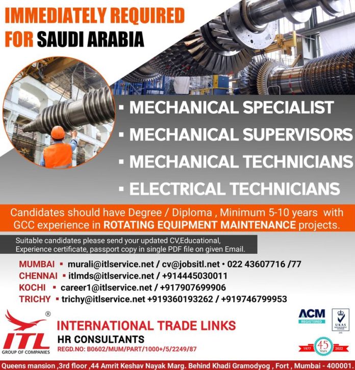 Wanted for Saudi Arabia - Rotating equipment Maintenance