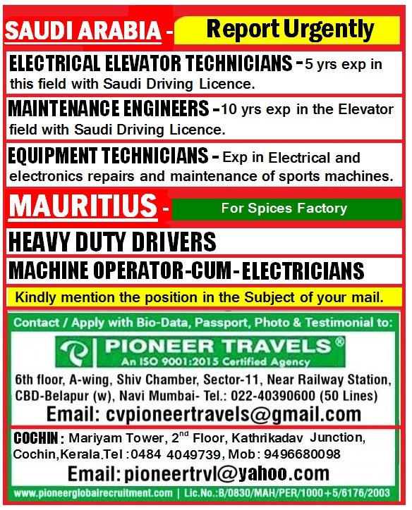 As per the labour law of Saudi arabia & maurituis