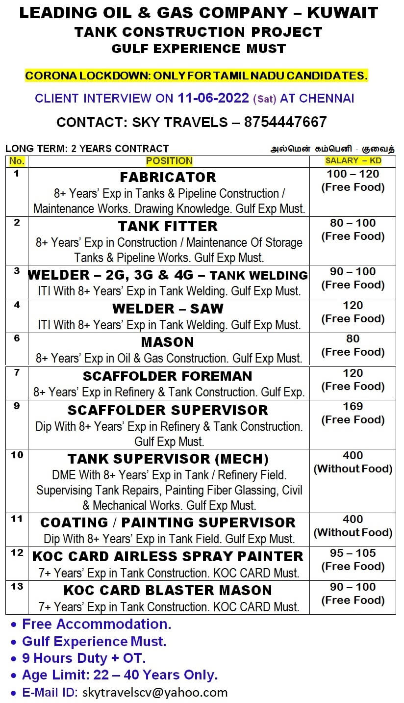 Welder - 2G, 3G & 4 G - tank welding | 100 KD | |