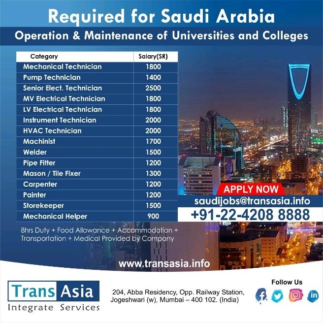 Saudi Arabia job vacancy for Indian - Operation & Maintenance