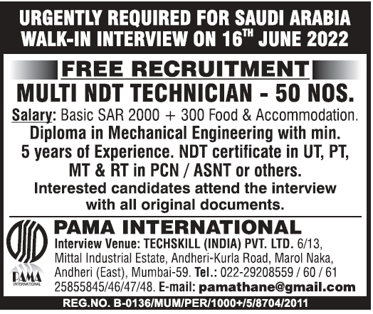 NDT Jjobs in Saudi Arabia - Free recruitment