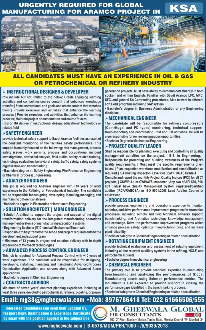 Recruitment to Aramco project in KSA