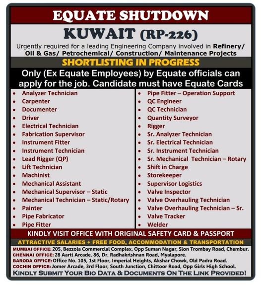 Equate Kuwait Shutdown - Large recruitment
