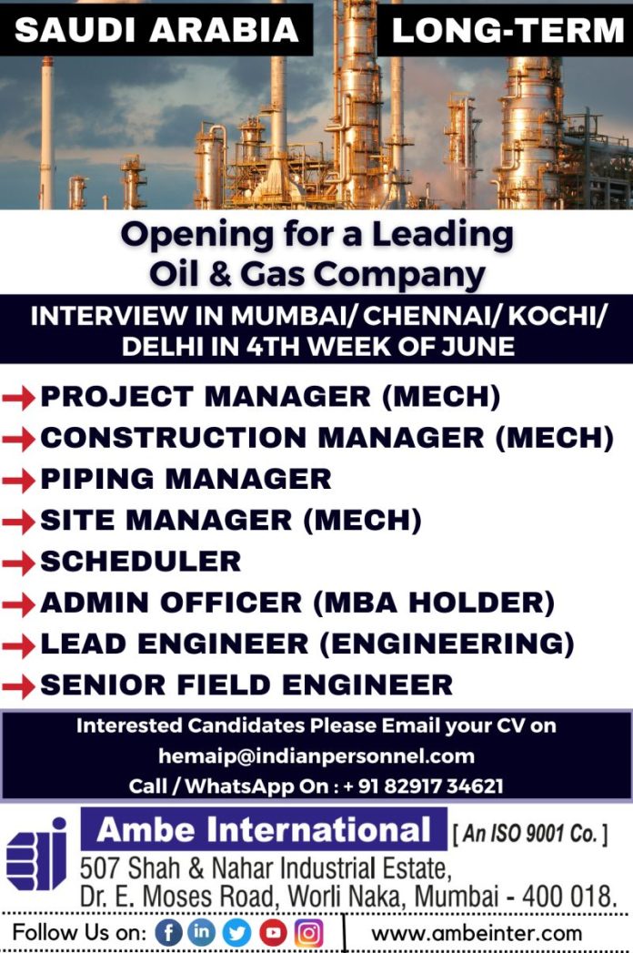 Recruitment to oil & gas company in Saudi arabia - Long Term