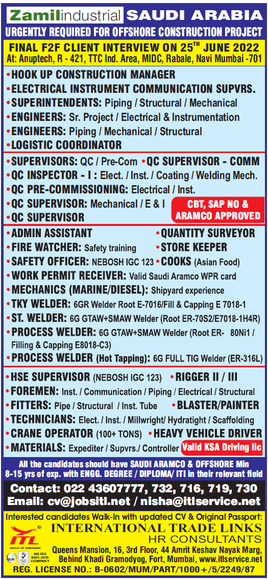 QC inspector - I: electrical/instrumental/coating/welding mechanics | ||