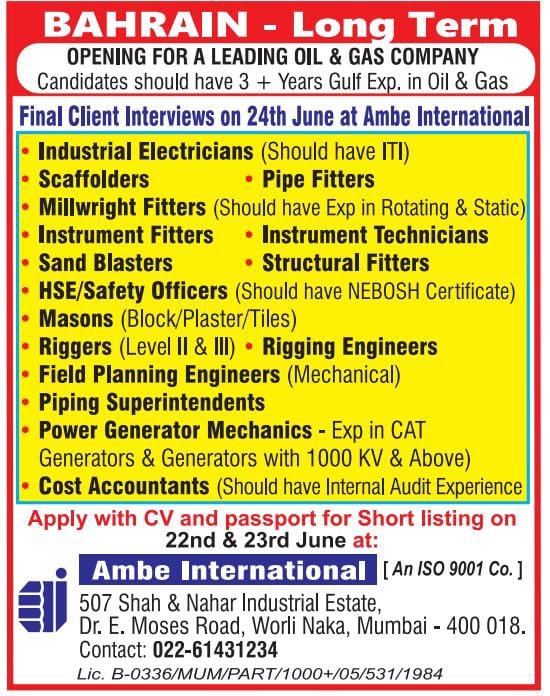 Recruitment to Oil & Gas Company in Bahrain - Long Term