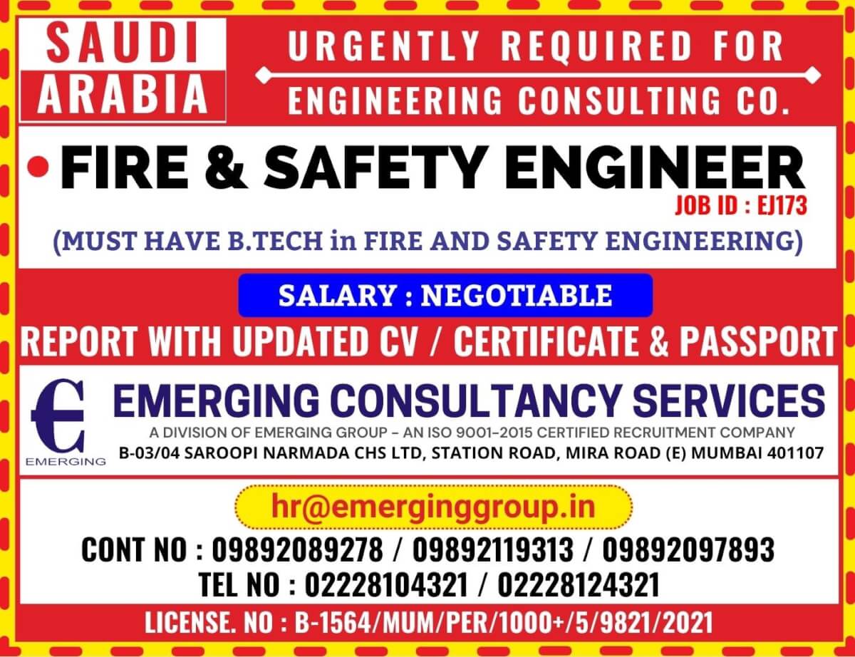 Fire & Safety engineer job vacancy in Saudi arabia - Urgently required