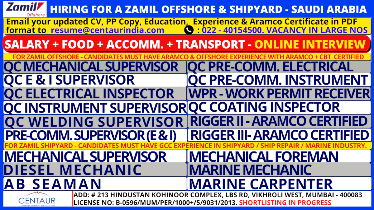 Candidates must have GCC experience in shipyard/ship repair/marine industry
