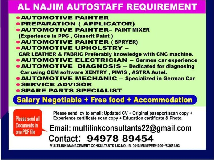 Saudi Arabia automobile Jobs 2022 - Al Najim Auto Service