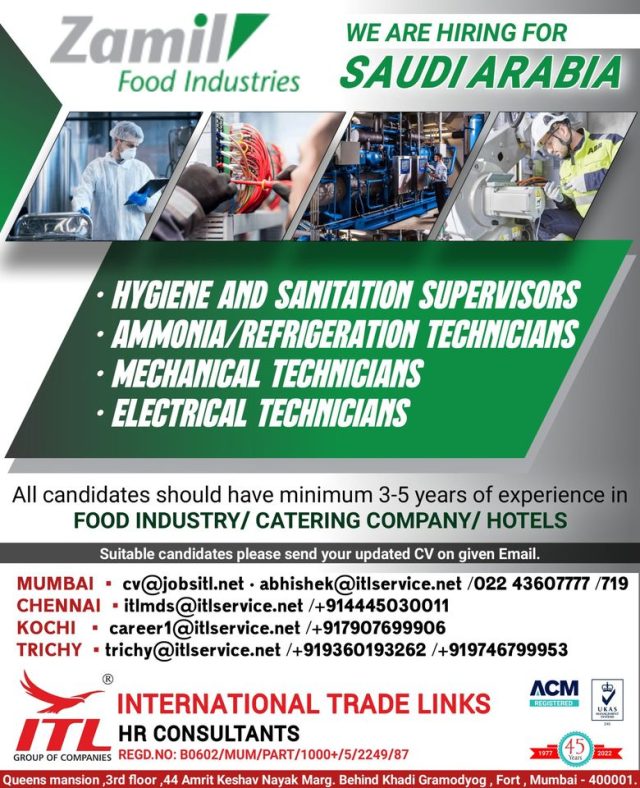 Zamil Food Industries vacancy - Hiring for Saudi arabia