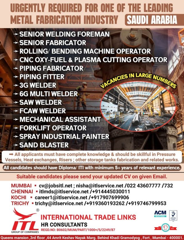 Hiring for Saudi arabia - Metal Fabrication Industry