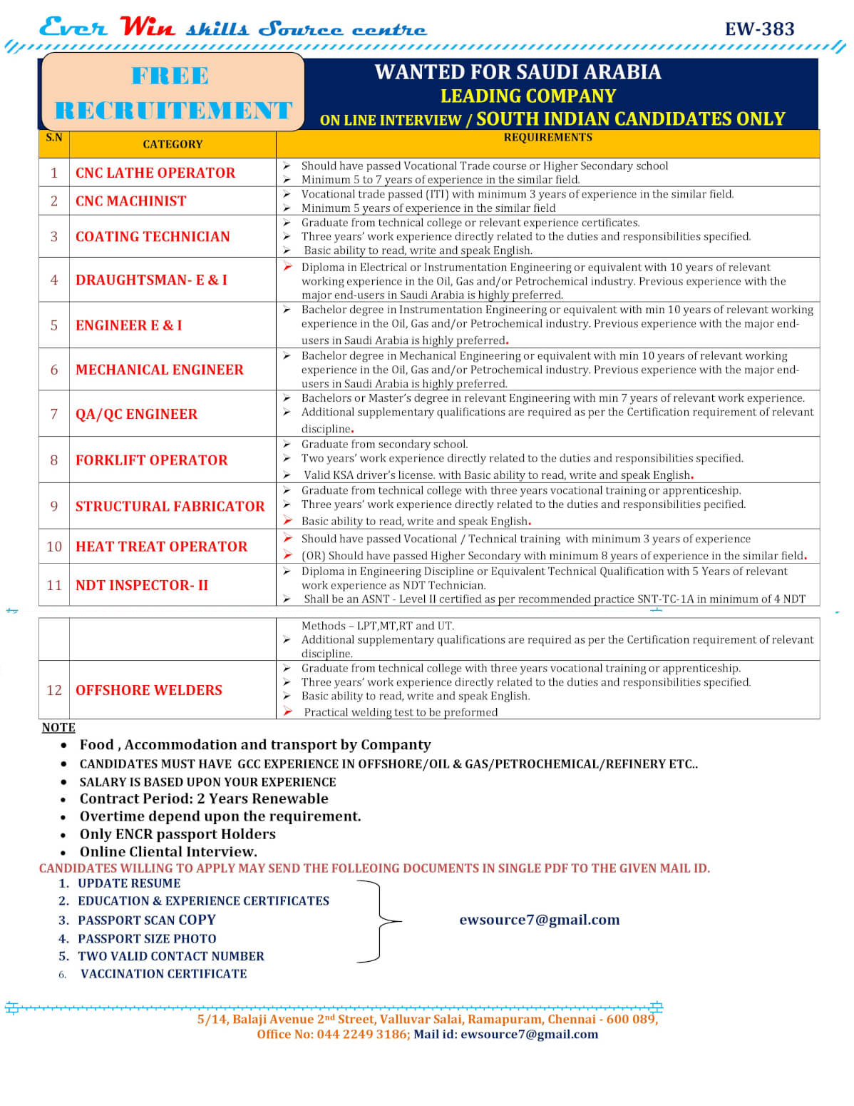 Wanted for Saudi arabia - Free recruitment