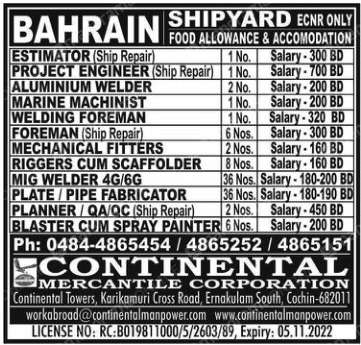 Bahrain shipyard job vacancies - Urgently required
