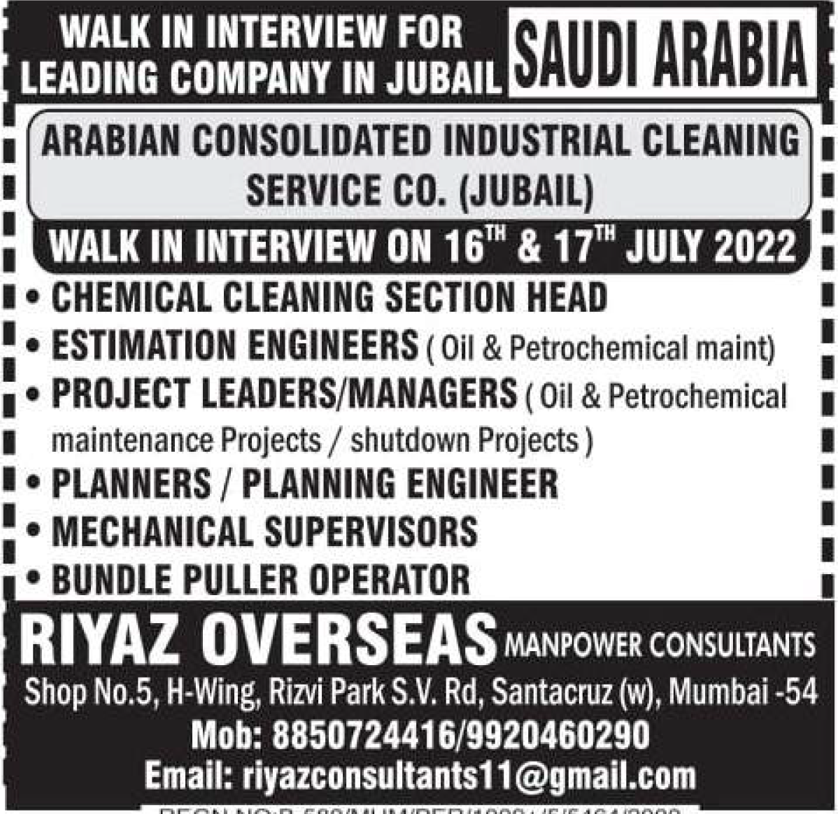 Arabian Consolidated Industrial Cleaning Services company KSA - Urgently required