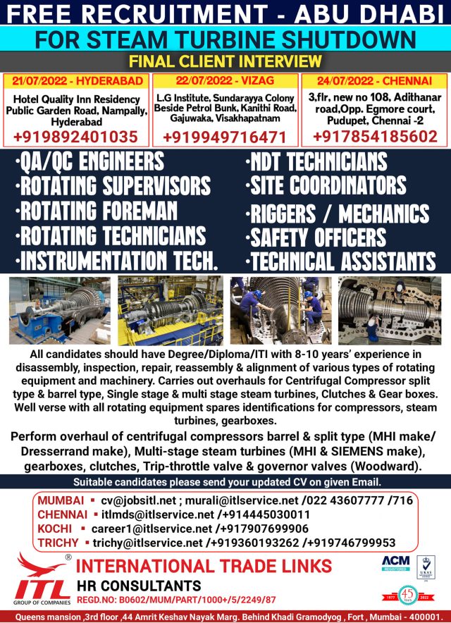 Free recruitment to Abu dhabi - Shutdown Project