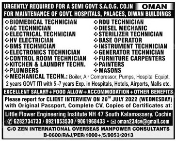 Walk-in-interview on 20th July 2022 at Little flower Engg. institute, nh 47, cochin university p.o., near metro pillar no. 298, south kalamassery, cochin - 682022, kerala