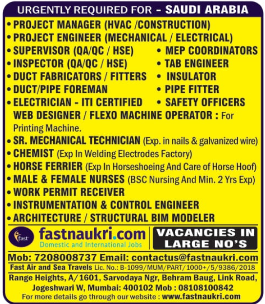 Urgent hiring in Saudi Arabia - Large Vacancies