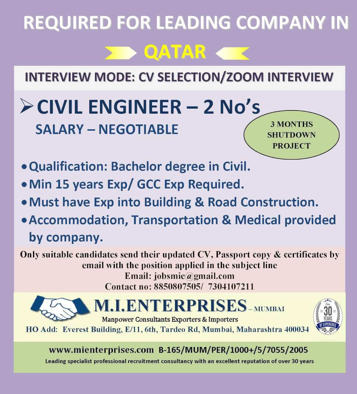 Urgent Civil Engineering jobs in Qatar - Shutdown Project