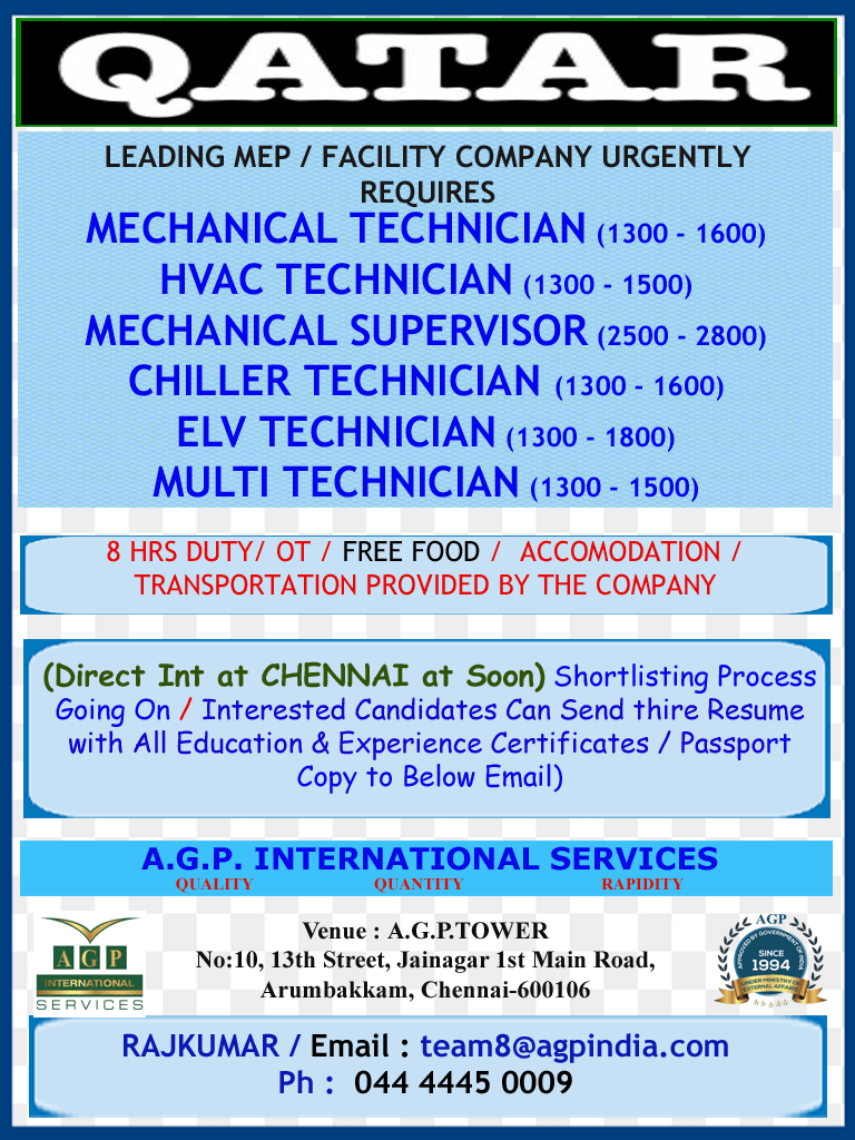 Recruitment to Qatar - MEP/Facility Company
