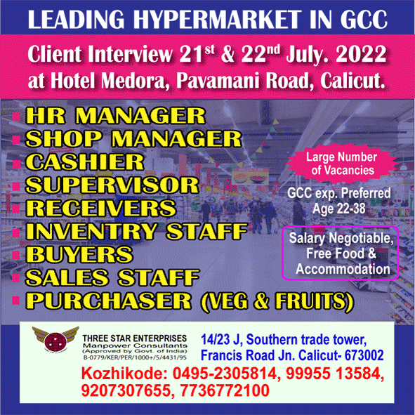 Walk-in-interview on 21st & 22nd July 2022 at Hotel medora, pavamani rd, Calicut