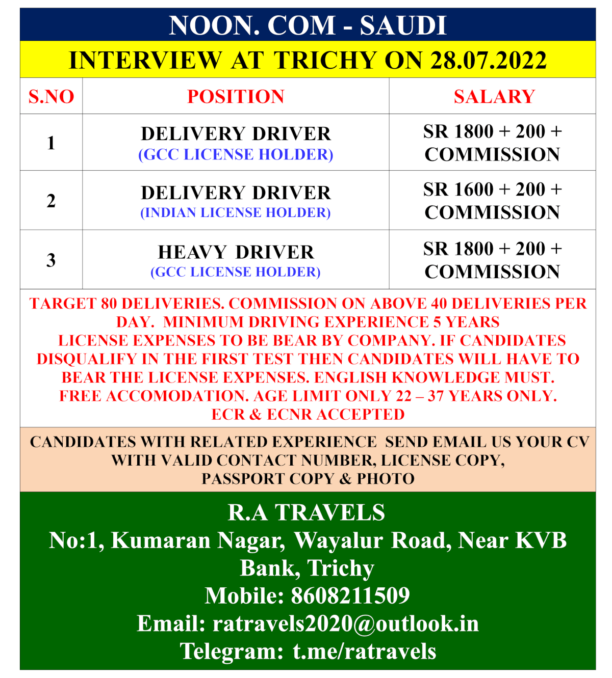 | Delivery driver (indian license holder) | 1800 SAR | |