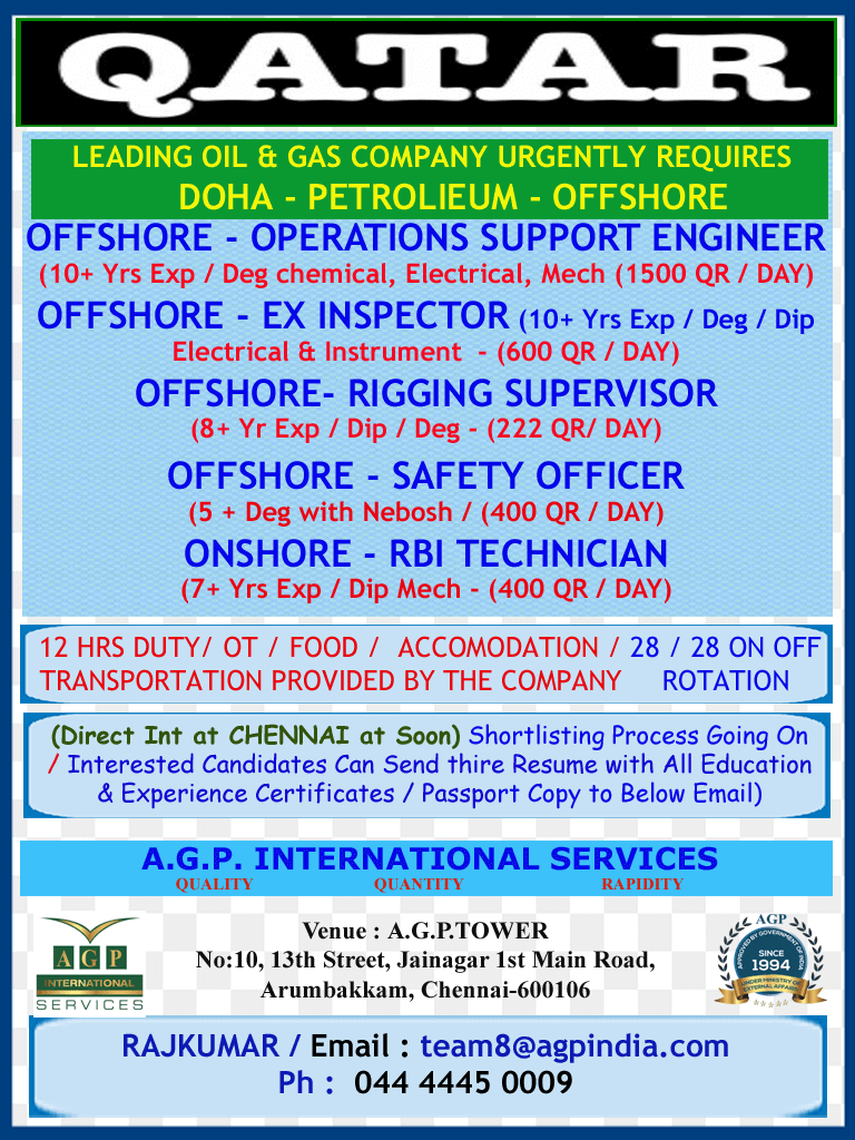 Offshore job vacancy in Qatar - Oil & Gas Company