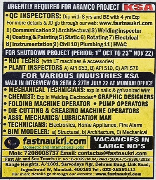 Recruitment to Saudi Arabia for various Project