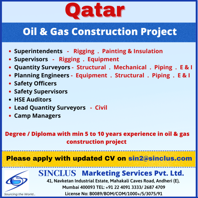 Hiring for Qatar - Oil & Gas Construction Project