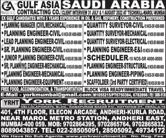 Gulf Asia contracting company vacancies - Hiring for KSA