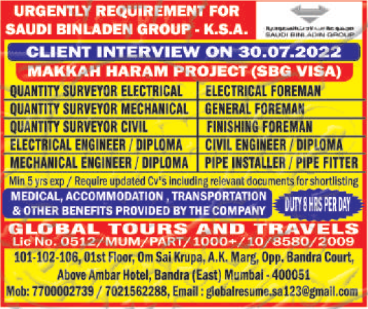 Saudi Binladin Group jobs 2022 - Urgent requirement