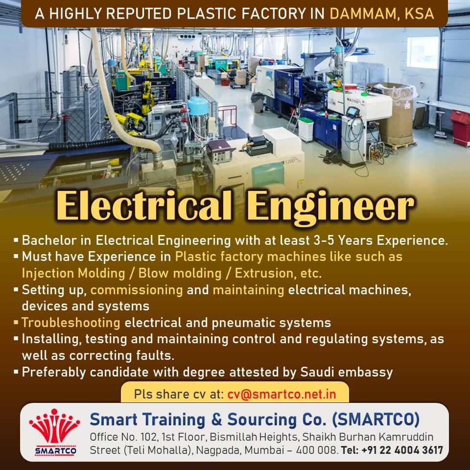 Electrical engineer job in Saudi arabia - Plastic factory