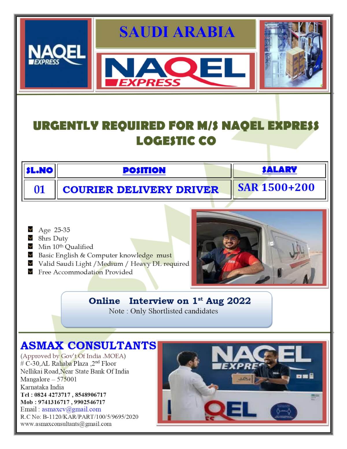 Naqel Express job vacancies - Wanted Courier Delivery Drivers for KSA