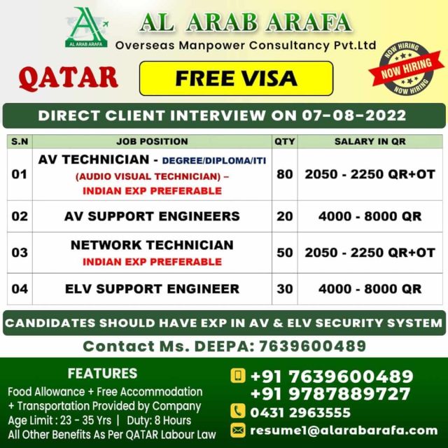 | AV technician (audio visual technician) | 80 | 2250 QAR |