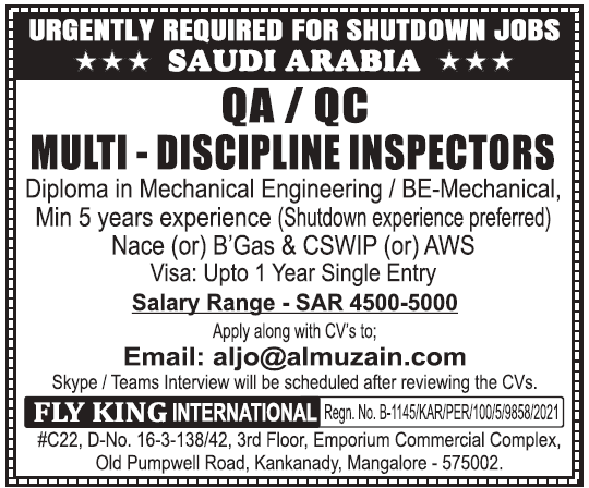 QA/QC jobs in Saudi arabia - Shutdown Project