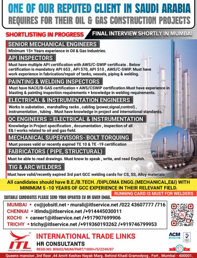 Disclaimer:- GCCWALKINS have no involvement in any recruitment process, This website just sharing job vacancies & interviews from various sources. Applicants are advised to research the bonafides of the prospective employer independently. We do NOT endorse any requests for money payments and strictly advice against sharing personal or bank related information. If you suspect any fraud or malpractice, email us at gccwalkins@gmail.com