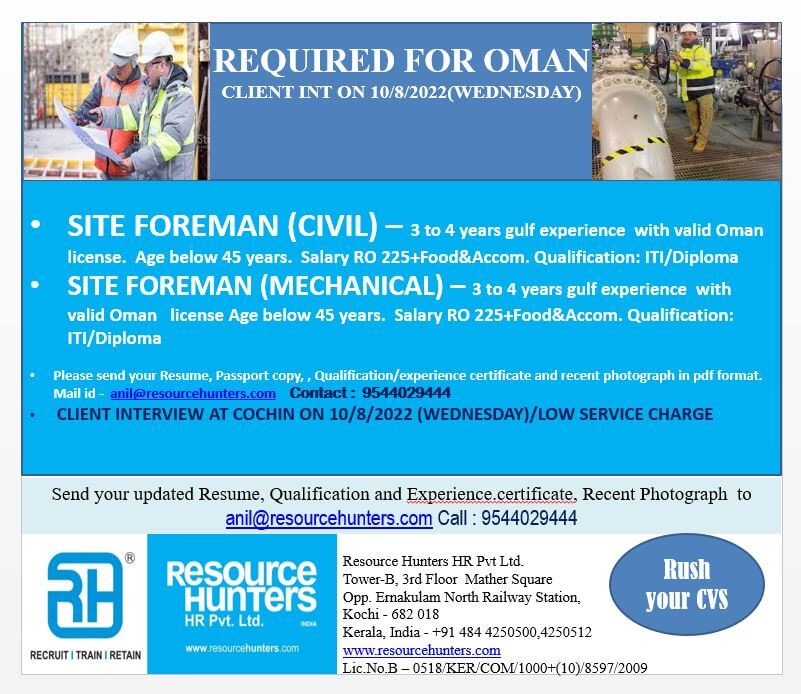 Candidates must have 3 to 4 years gulf experience with valid Oman license