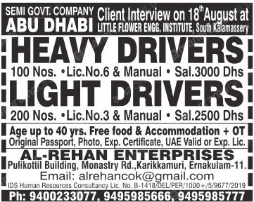 Light & Heavy Driver Jobs in Abu Dhabi - Semi Govt Company