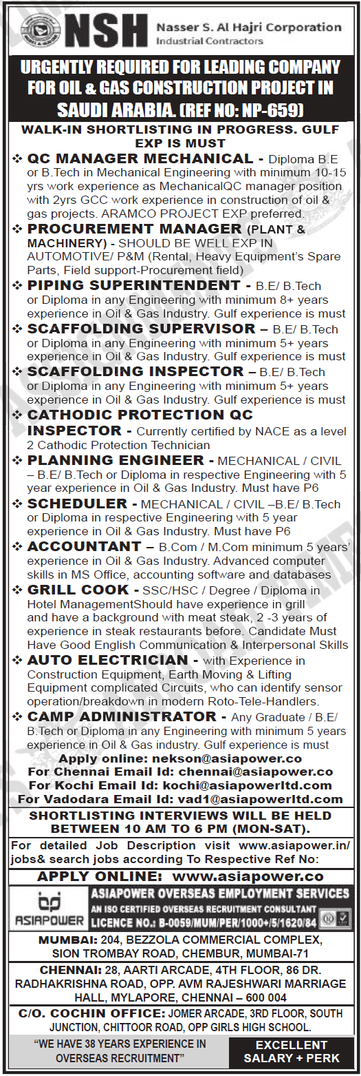 NSH Saudi arabia - Hiring for Oil & Gas Construction Project